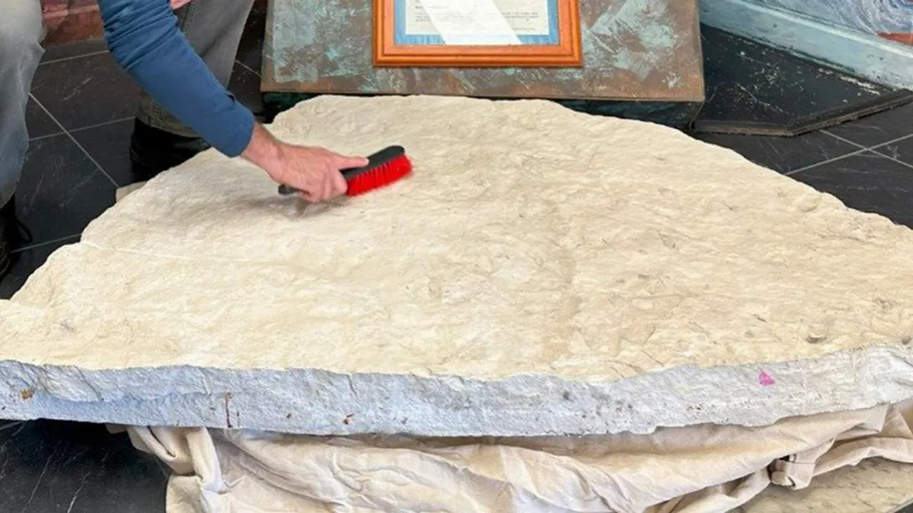 Okul taş parçasında onlarca 200 milyon yıllık dinozor ayak izleri bulundu