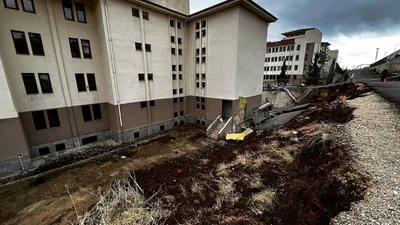 Okulun istinat duvarı çöktü; eğitime ara verildi