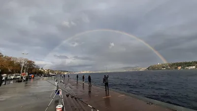 İstanbul Boğazı'nın ortasında gökkuşağı sürprizi