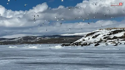 Türkiye'nin buz tutan eşsiz güzelliğinden ilginç görüntü: Gölün sahipleri döndü ama su yok, buz var!
