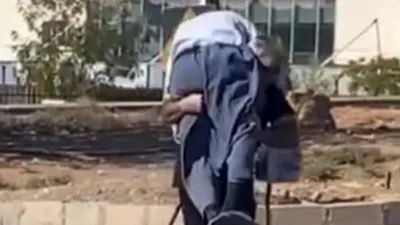 Polis, ayağı kırılan kadını sırtında taşıdı