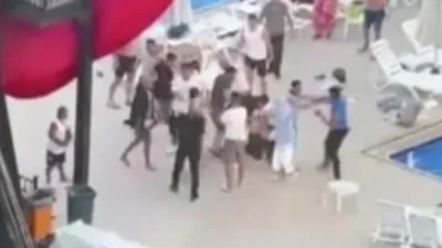 Pantolonlarıyla havuza girmeye kalkışan yabancı uyruklu magandalar, siteyi savaş alanına çevirdi