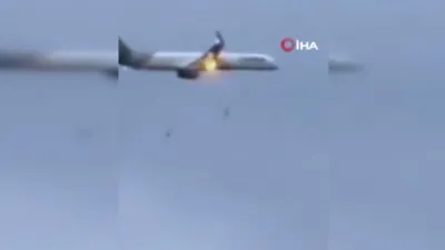 Yolcu uçağının motoru kalkıştan sonra alev aldı