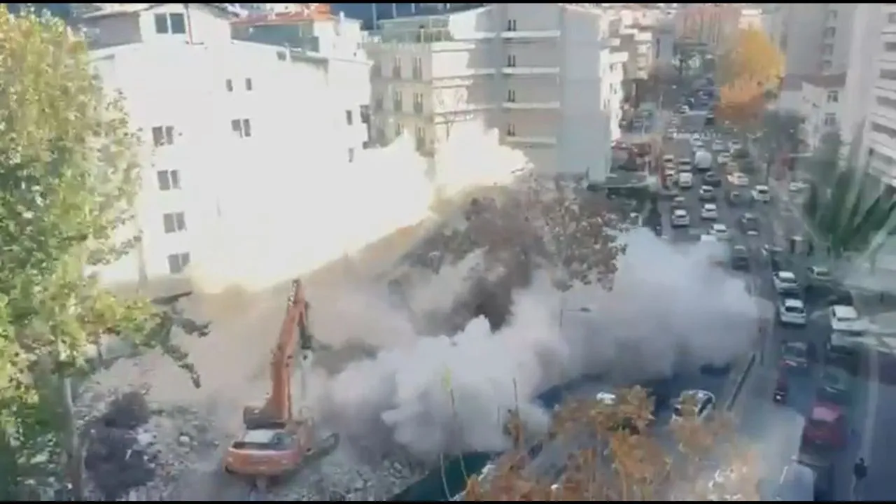 Ankara’da yıkım sırasında kepçenin dokunmasıyla yerle bir olan apartmanın çökme anı kamerada Galerinin tamamı için tıklayınız Bölge toz bulutu altında kalırken, faciadan dönülen olayda yaralanan olmadı.