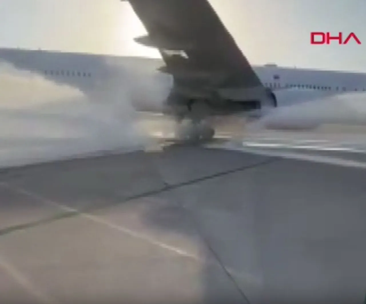 İstanbul’dan saat 17.45'te havalanan Türk Hava Yolları'nın TK2430 sefer sayılı TC-LKF tescilli Boeing 777 uçağı, Antalya Havalimanı pistine başarılı bir iniş gerçekleştirdikten sonra taksi yolunda iniş takımlarından dumanlar yayılmaya başladı