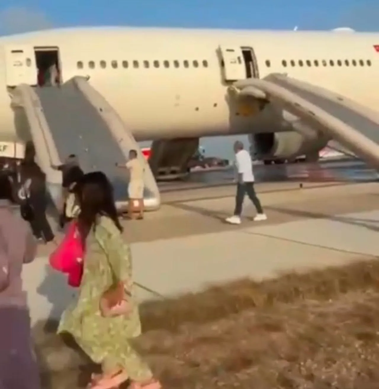 Bunun üzerine itfaiye ekipleri müdahale etti. Ekiplerin tavsiyesi doğrultusunda tedbiren slayt açılarak 247 yolcu ve 13 mürettebat tahliye edildi.