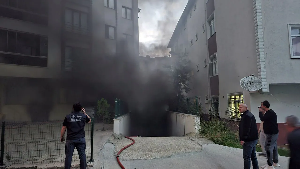 Tekirdağ'da 4 kartlı apartmanın otoparkındaki bir otomobilde patlama meydana geldi. Olay sonrası araçta çıkan yangından yayılan dumanın kapladığı apartmanda mahsur kalan 9 kişi, itfaiye merdiveniyle tahliye edildi.