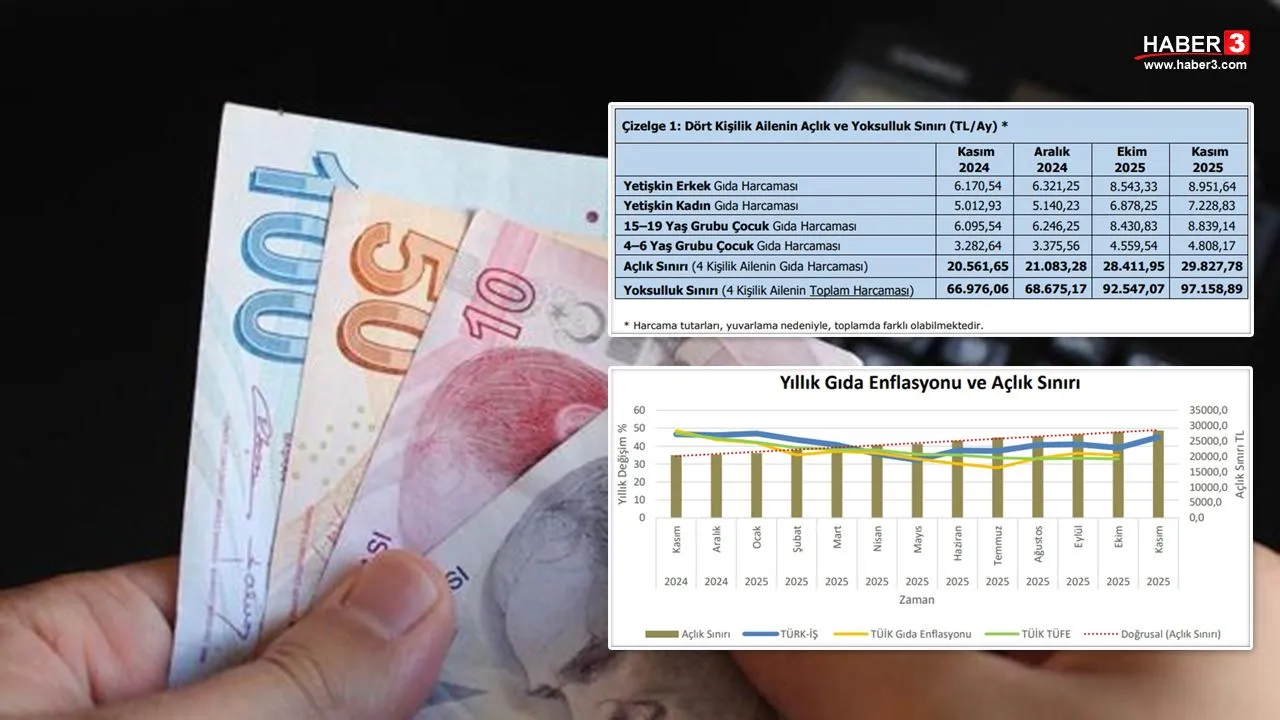 Türkiye'de hem asgari ücretlilerin hem de özel sektör çalışanlarının merakla beklediği 2026 yılı asgari ücret zammı tahminlerine her gün bir yenisi eklenirken, TÜRK-İŞ, açlık ve yoksulluk sınırı araştırmasının kasım ayı sonuçlarını açıkladı.