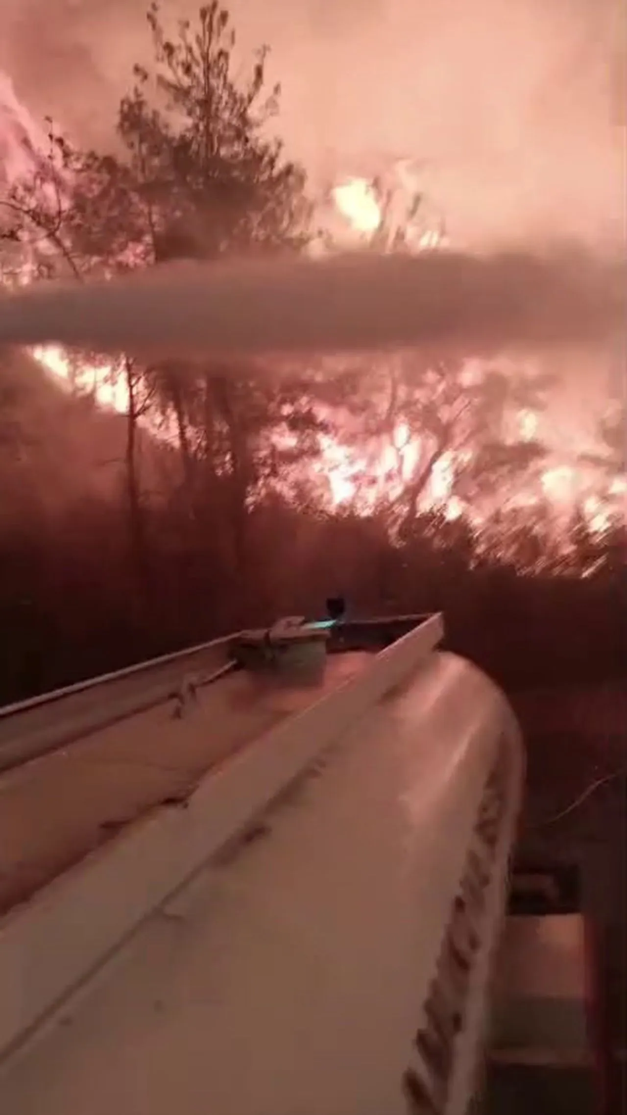 Belediye başkanı da orman yangınında alevlerin ortasında kaldı