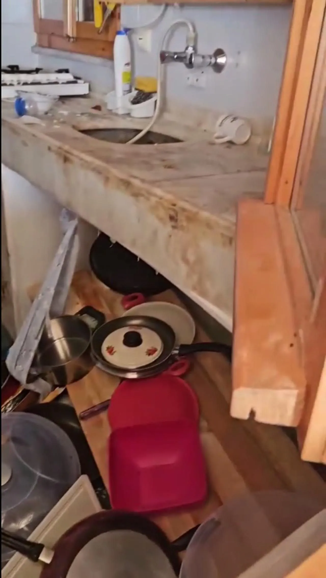Ayıların evi talan ettiğini fark eden Başkan Çebi'nin akrabalarından Yalçın Çebi, "Coşkun Başkanın evine girmiş. Buraları söküp, yıkmış. Ayı kardeşlere torpil de işlemiyor. Pencereden içeri girmiş, buraları yıkmış. Ayı da işini biliyor. Yazın onlara et atıyorum diye benim evime girmediler" dedi. (DHA)