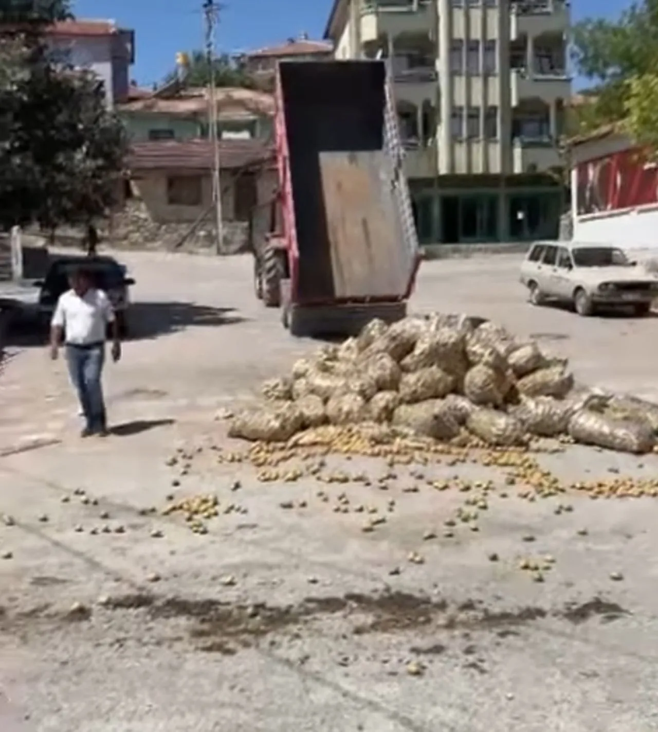 Yozgat’ta üretici yazlık patatese maliyetin altında bile alıcı bulamamaktan yakınırken, CHP'li Aydıncık İlçe Başkanı Sadık Erdoğan üretici maliyetlerine tepki göstererek bir kamyon patatesi sokağa döktü.