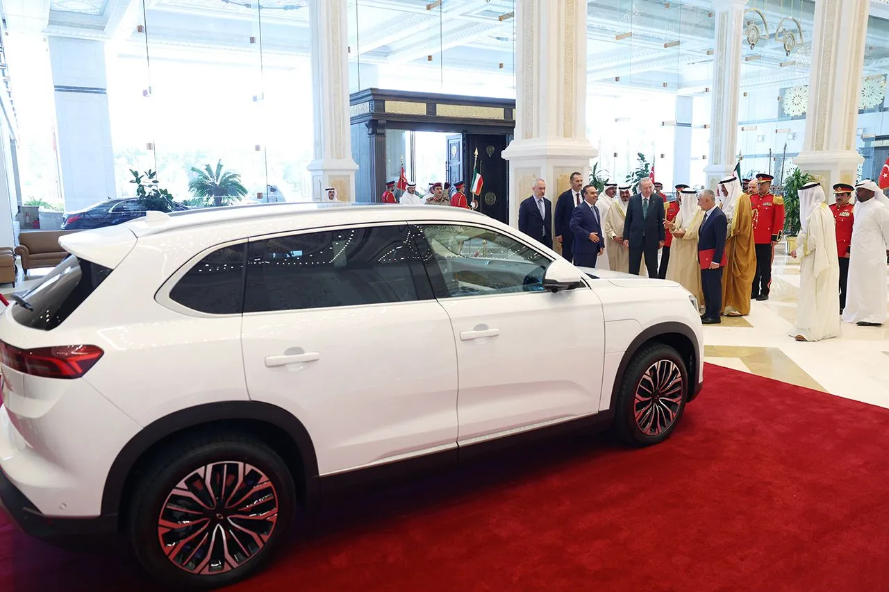 Cumhurbaşkanı Recep Tayyip Erdoğan, resmi ziyaret kapsamında bulunduğu Kuveyt'teki temaslarını sürdürürken Kuveyt Emiri es Sabah'a beyaz renkte Togg aracı hediye etti.