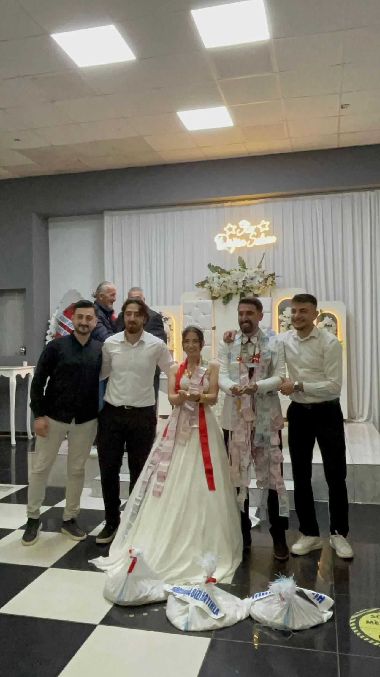 Damadın arkadaşları meşhur filme özendi geline ağırlığınca para taktı