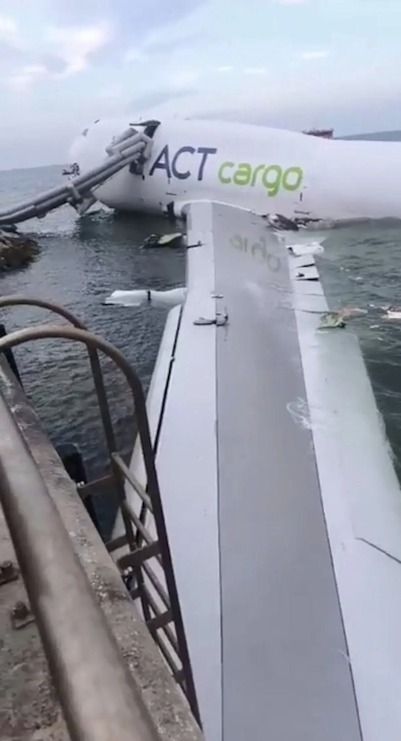 Dev kargo uçağı iniş sırasında pistten çıkıp denize uçtu