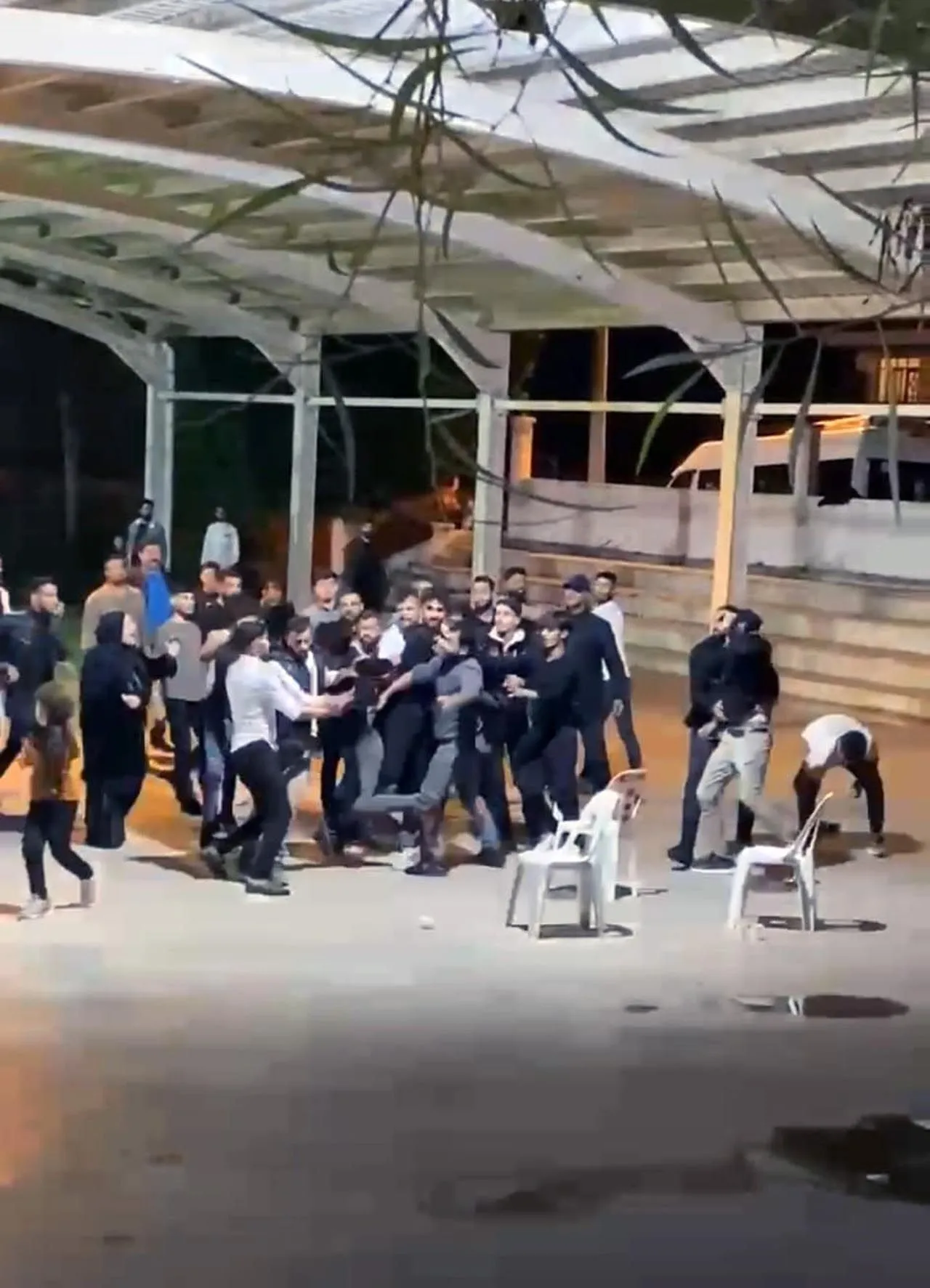 Antalya'nın Serik ilçesinde düğünde yabancı uyruklu iki grup arasında çıkan kavgada sandalyeler havada uçuştu. O anlar kameraya yansıdı.