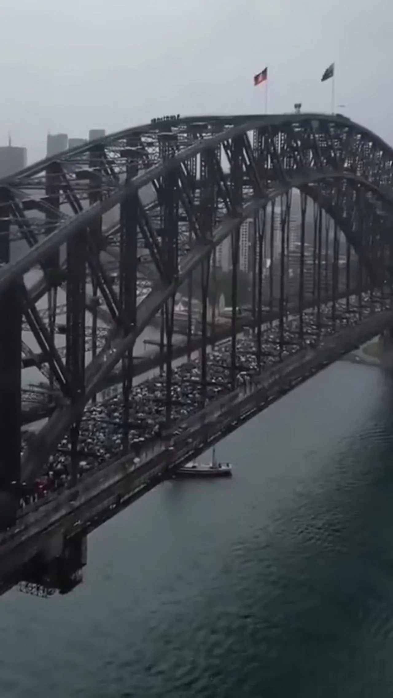 Dünyanın öbür ucunda Gazze için tarihe geçen destek yürüyüşü: 100 bin kişi köprüyü kapattı