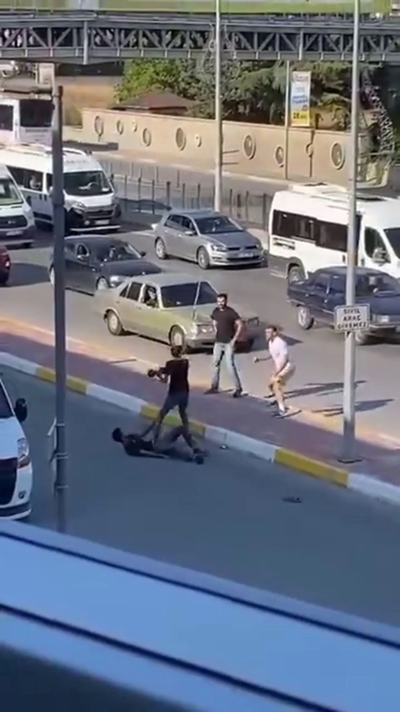 Sakarya'da trafikte 2 grup arasında çıkan tartışma, kısa sürede çekiç ve sopaların kullanıldığı kavgaya dönüştü. Kavga anı, cep telefonu kamerasına yansıdı.