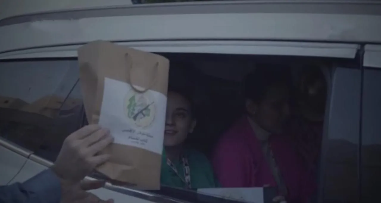 Görüntülerde, Kassam Tugayları'nın esirlere üzerinde "Tutuklunun serbest bırakılması kararı" yazılı sertifika ve "hediye çantaları" verdiği görüldü.