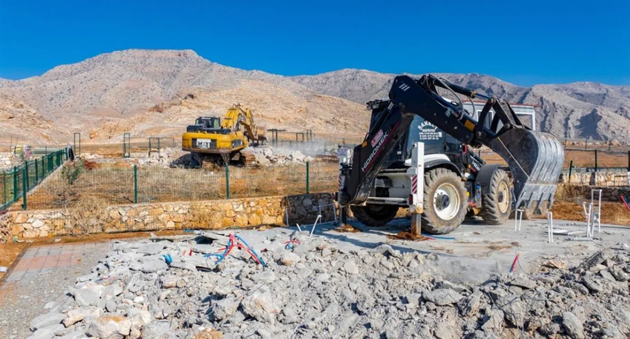 Yasal prosedürlerin tamamlanmasının ardından İl Özel İdaresi ekipleri, ruhsatsız şekilde kaçak olarak inşa edilen 8 villanın yıkım çalışmalarını gerçekleştirdi. (DHA)