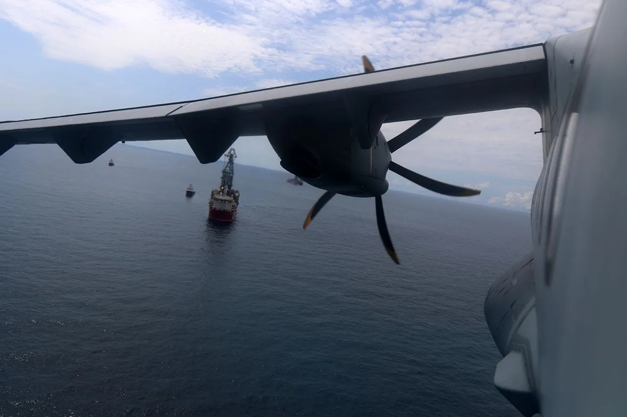 Hem mavi vatanın hem de gökyüzünün adeta gözü kulağı konumunda bulunan Deniz Kuvvetleri'ne ait P-72 Deniz Karakol Uçağı, milli sondaj gemilerine de havadan siper oluyor.