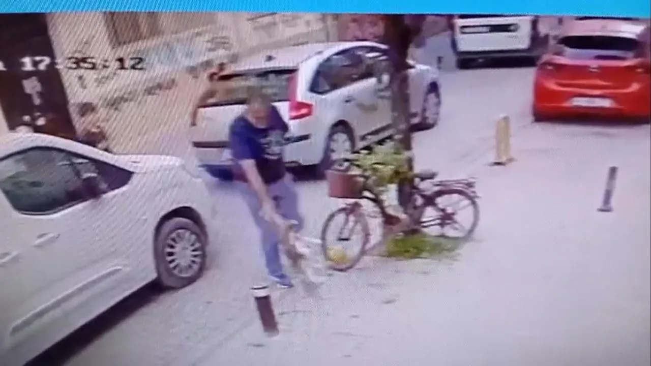 İki ayaklı caniden 4 ayaklı cana sokak ortasında infial yaratan şiddet