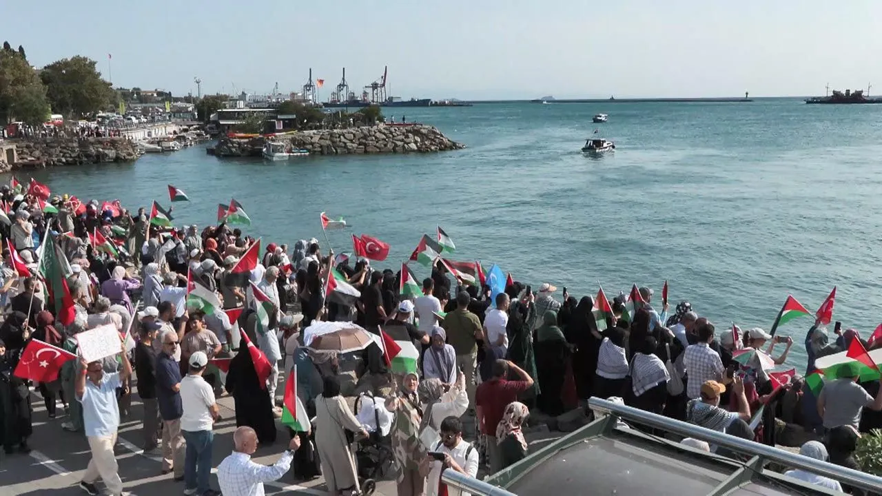 Refah Kapısı'nın açılması ve ablukanın kırılması için Gazze'ye hareket edecek Küresel Sumud Filosu'na destek vermek amacıyla Open Rafah Hareketi öncülüğünde İstanbul Boğazı'nda eylem gerçekleştirdi