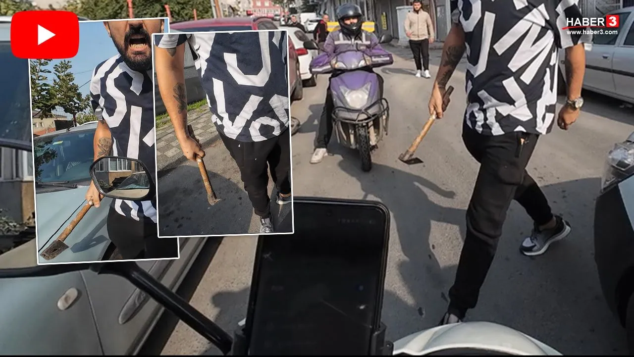 İstanbul'da bir ticari araç ile motosiklet sürücüsü arasındaki yol verme tartışmasında işler yine çığrından çıktı. Aracından keserle inen sürücü motosiklet üstündeki sürücüyü elindeki keserle tehdit etti. Dehşete düşüren o anlar motosiklet sürücüsünün kask kamerasına saniye saniye yansıdı.