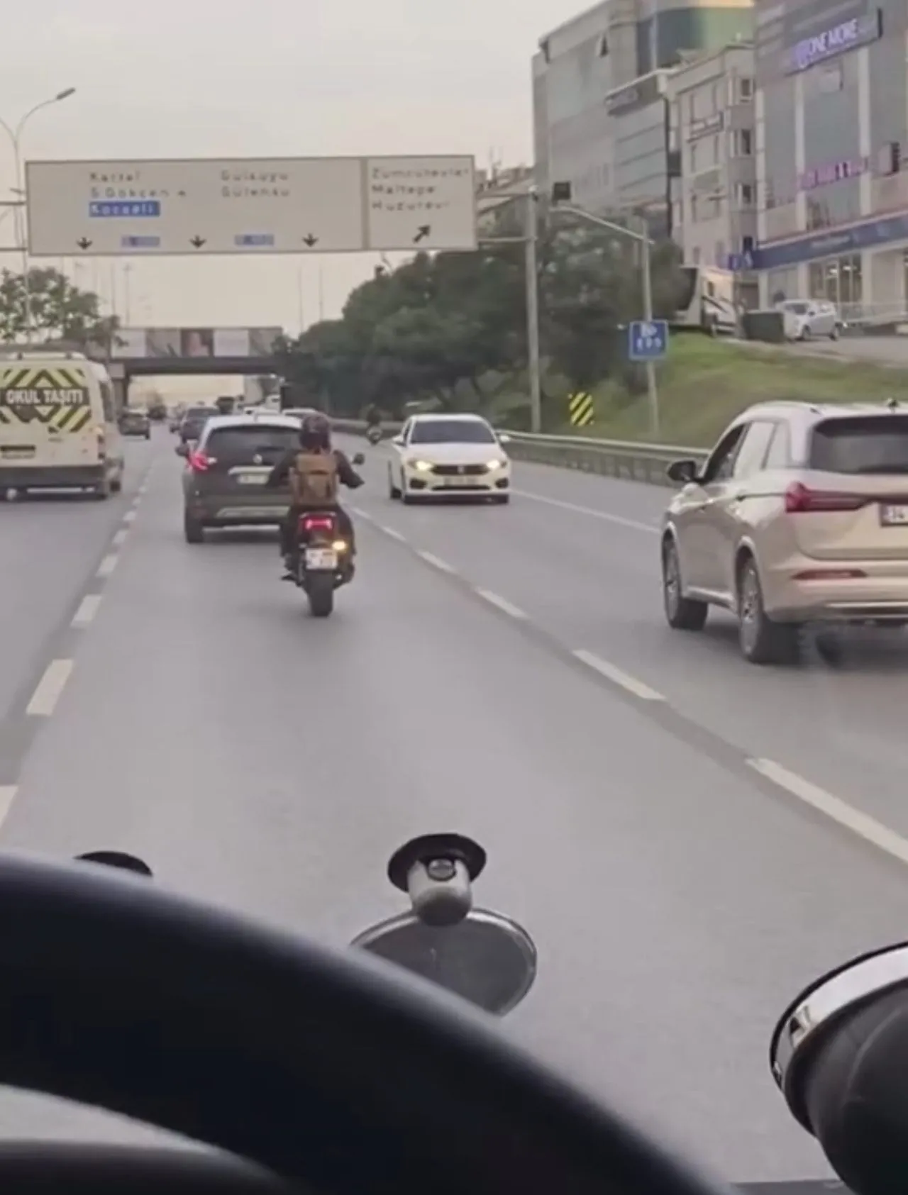 İstanbul Maltepe'de D-100 Karayolu'nda seyir halindeki bir otomobil geri geri ilerledi. Olay anı başka bir sürücü tarafından cep telefonuyla kaydedildi.