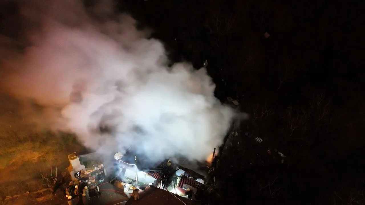 Yangın, saat 02.15 sıralarında Kocataş Mahallesi Sarnıç Sokak'ta iki katlı müstakil evde çıktı.