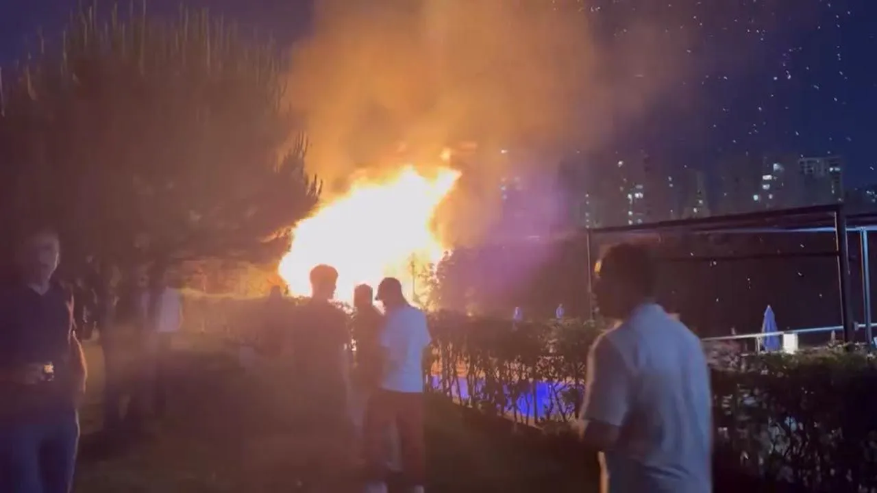 Yangın, saat 21.30 sıralarında Tahtakale Mahallesi Petunya Sokak'taki sitenin bahçesinde çıktı. İddiaya göre; sitedeki düğünde atılan havai fişekler nedeniyle parktaki ağaçlar alev aldı.