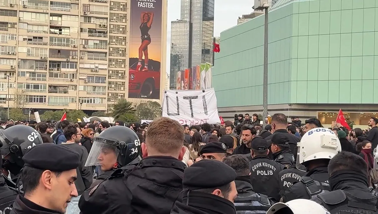 Şişli'de toplanan üniversite öğrencilerine polis önce "yüzünüzü açın" anonsu yaptı ardından da gözaltı işlemlerine başladı.