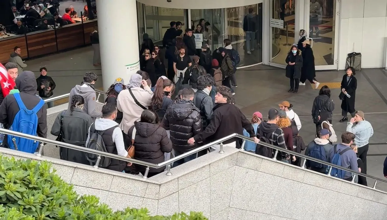 Yüzlerindeki maskeleri indirmeyen gençlere polis müdahalede bulundu. Bazı öğrenciler gözaltına alındı.