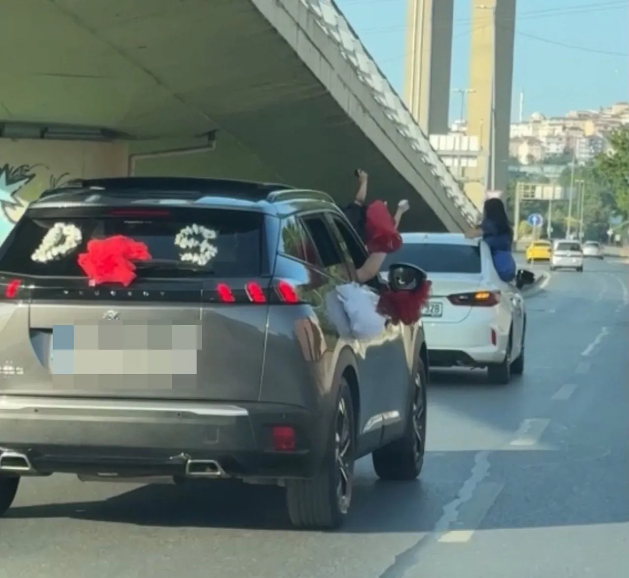 Beyoğlu Sütlüce Mahallesi Karaağaç Caddesi'nde ilerleyen bir düğün konvoyundaki araçlar slalom yaparak trafiği tehlikeye attı.