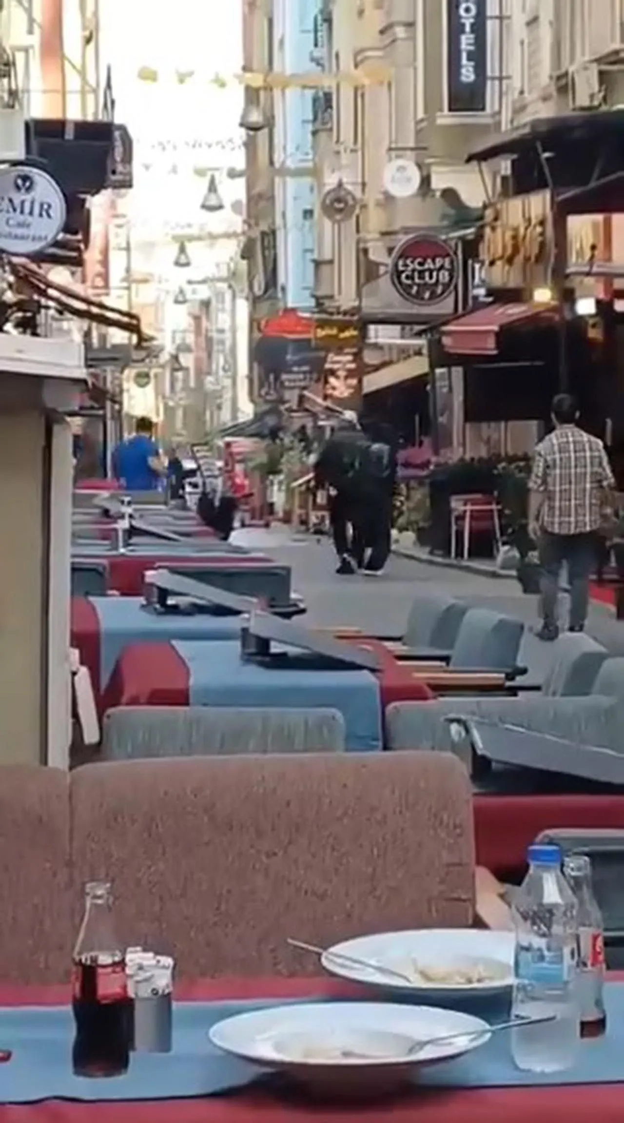 Beyoğlu İstiklal Caddesi'ndeki bir sokakta kafeteryada çalışan S.B. (22), otelin önünde bekleyen çalışan T.T.'yi darbetti. Otelden silahla dışarı çıkan S.T. adlı şahıs, 3 kişiye kurşun yağdırdı. 2 kişinin yaralandığı olay güvenlik kamerasına yansıdı.