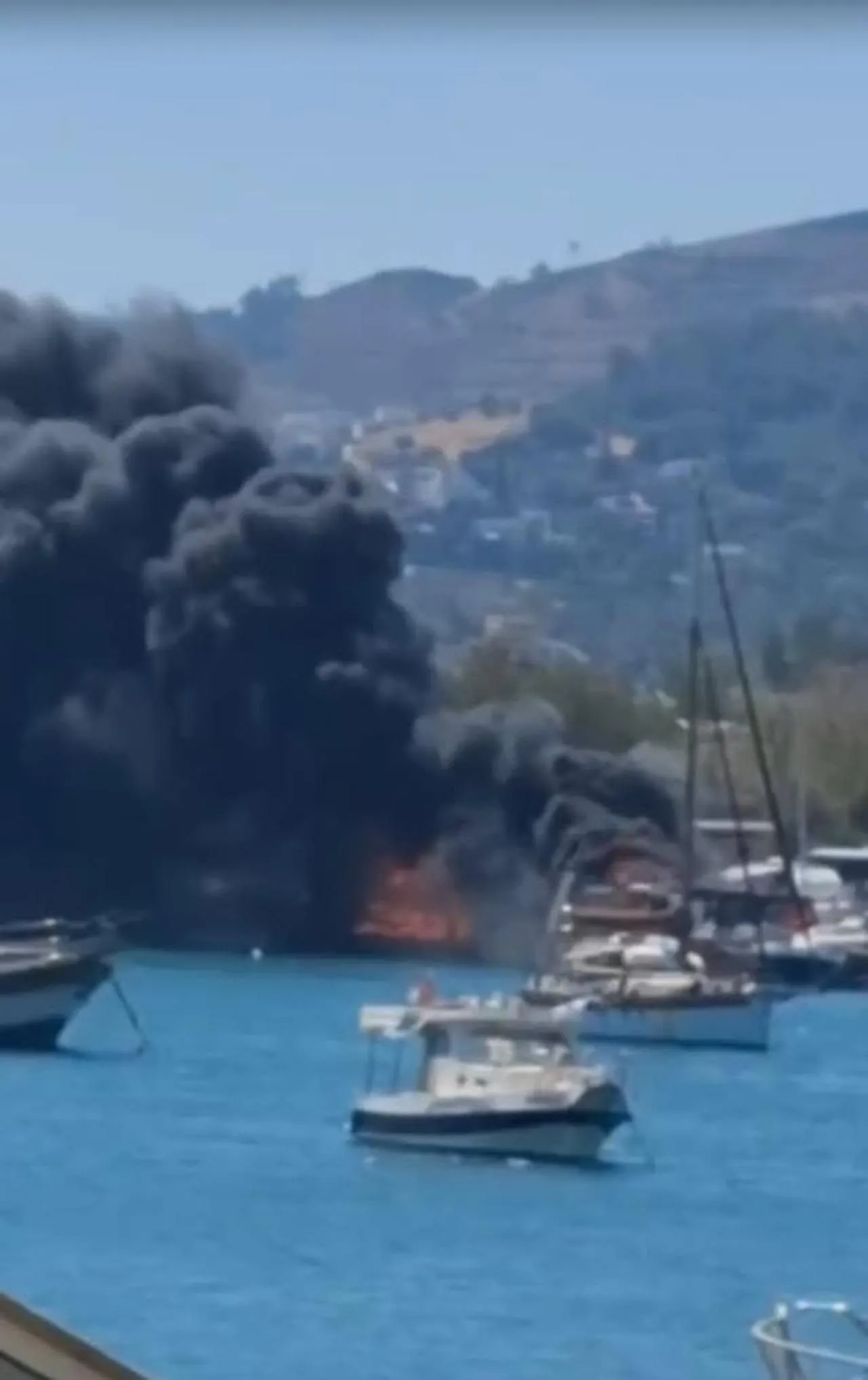 İzmir'de korku dolu anlar! Limandaki tekneler alev topuna döndü Galerinin tamamı için tıklayınız Tekneden yükselen siyah duman gökyüzünü kapladı.