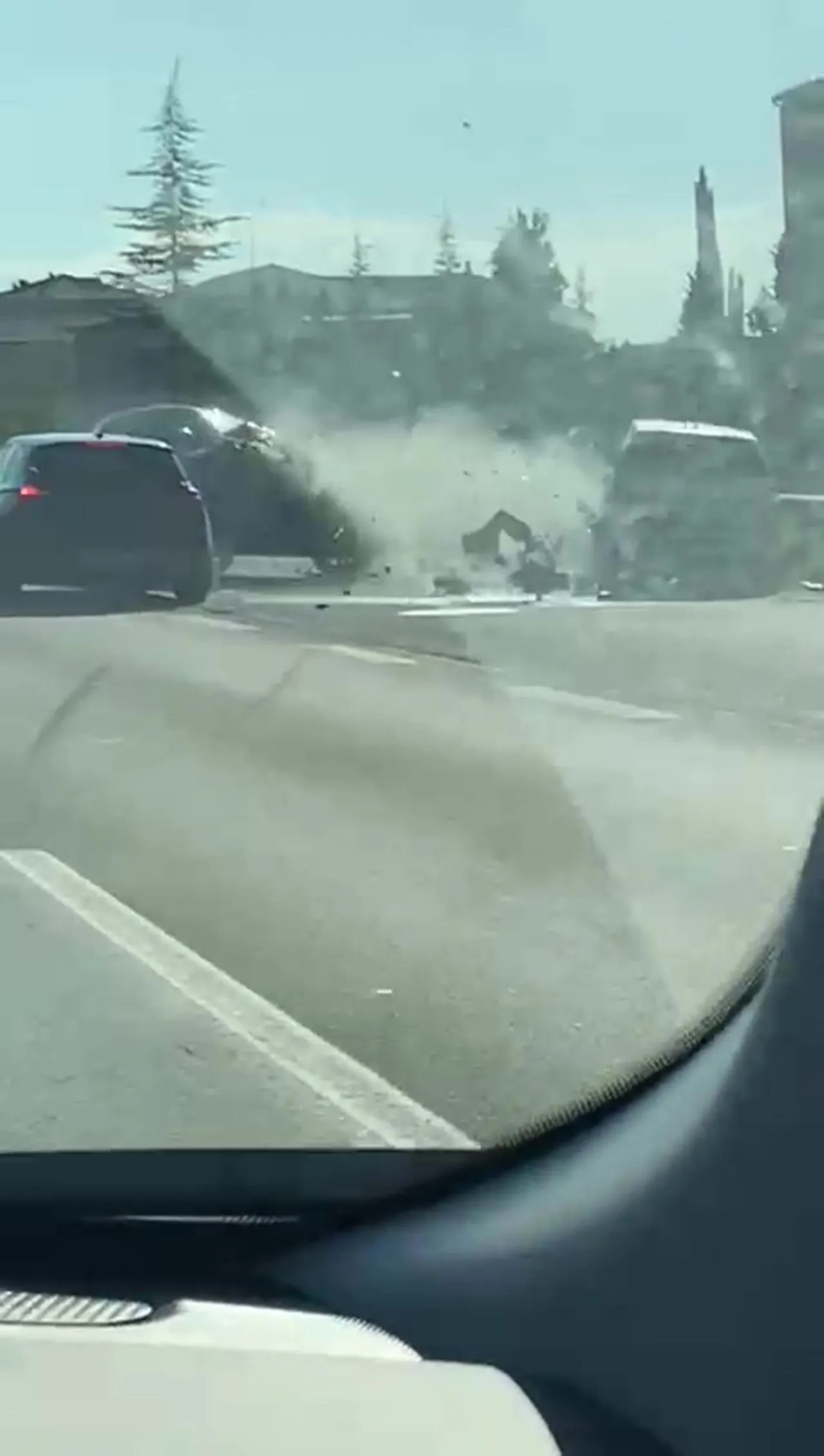 Otoyol magandası ortalığı savaş alanına çevirdi: Bir otomobili sıkıştırdı 5 araç birbirine girdi