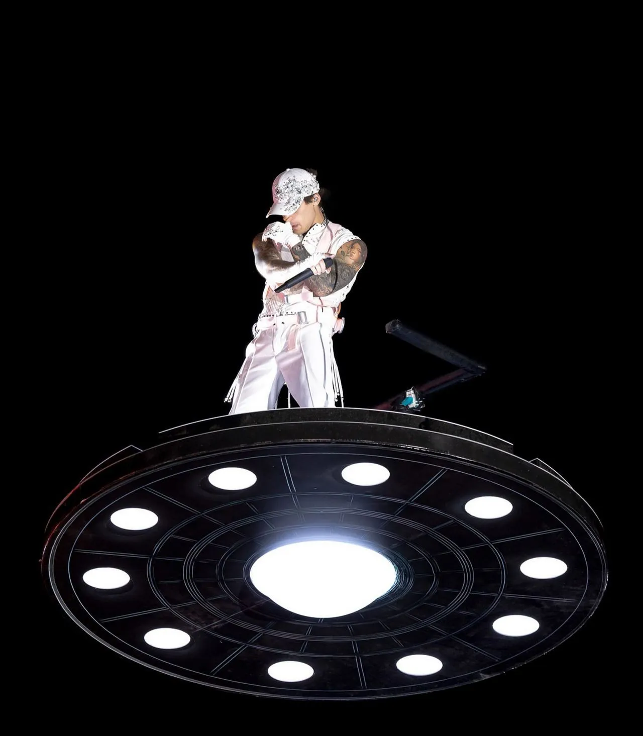 Tekirdağ’ın Hayrabolu ilçesinde Ayçiçeği Festivali'nde UFO benzeri platformda konser veren 'Çakal' lakaplı rapçi Emirhan Çakal, konser sonrası vince asılı platformdan indiği sırada bacağına saçma isabet etti.