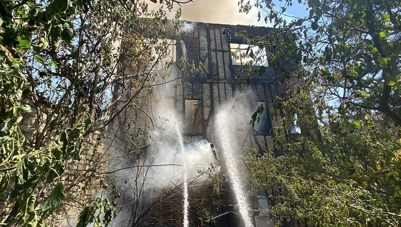 2 katlı tarihi konak kullanılamaz hale gelirken, yangının çıkış nedeninin belirlenmesi için soruşturma başlatıldı. (DHA)