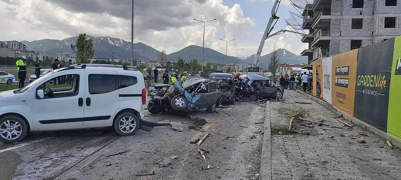 Erzurum'da bir inşaata beton taşıyan mikser aracının şoförü seyir halindeyken rahatsızlandı, kontrolden çıkan mikser park halindeki 8 aracı hurdaya çevirdi.