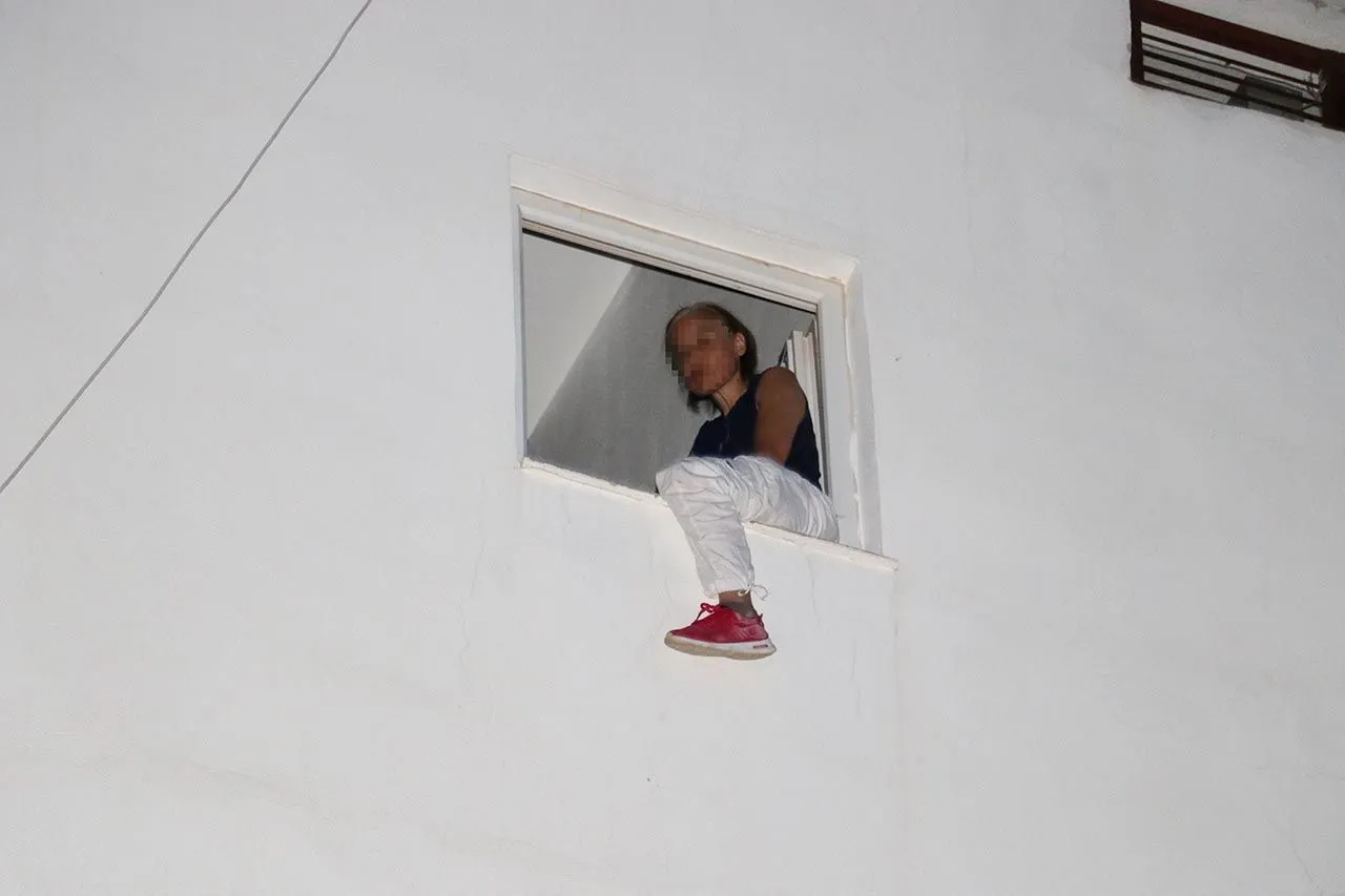 Çocuğunun çığlıklarını duyan Alihan Ç., Nazmiye Ş.'nin elindeki çakmağa vurup, düşürdü. Elindeki bıçağı da almaya çalışan Alihan Ç.'nin yanından kaçan Nazmiye Ş., apartmanın çatı katına çıkarak camdan sarktı. İhbarla bölgeye itfaiye, polis ve sağlık ekipleri sevk edildi. Ekiplerin yaklaşık 4 saat süren çabasına rağmen ikna edilemeyen Nazmiye Ş.'nin bir anlık dalgınlığından yararlanan polis, kadını bulunduğu yerden aldı.