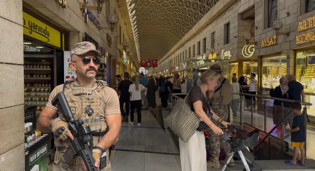 Bursa'da tarihi Kapalıçarşı'daki kuyumculara yönelik tehditlerin artmasının ardından özel harekat polisleri devriye atmaya başladı.