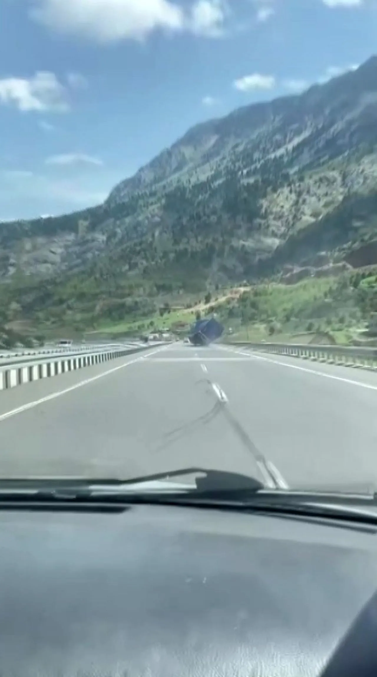 Kahramanmaraş'ta meydana gelen trafik kazasında tırın devrilme anı cep telefonu kamerasına yansıdı.