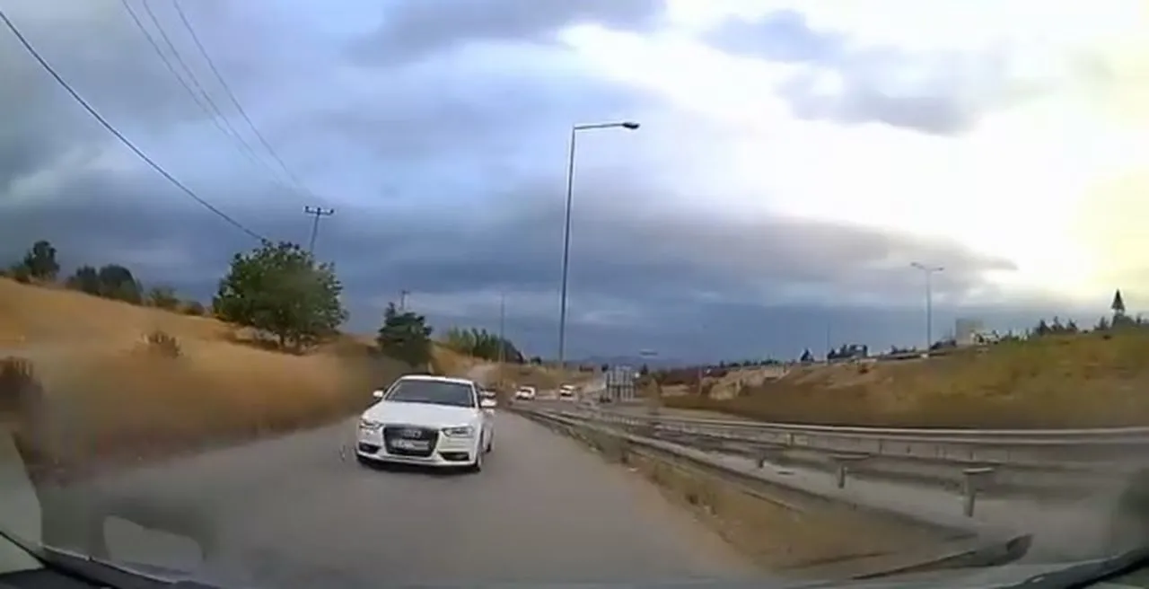 Trafikte ölümle burun buruna geldiler... Korku dolu anlar kamerada