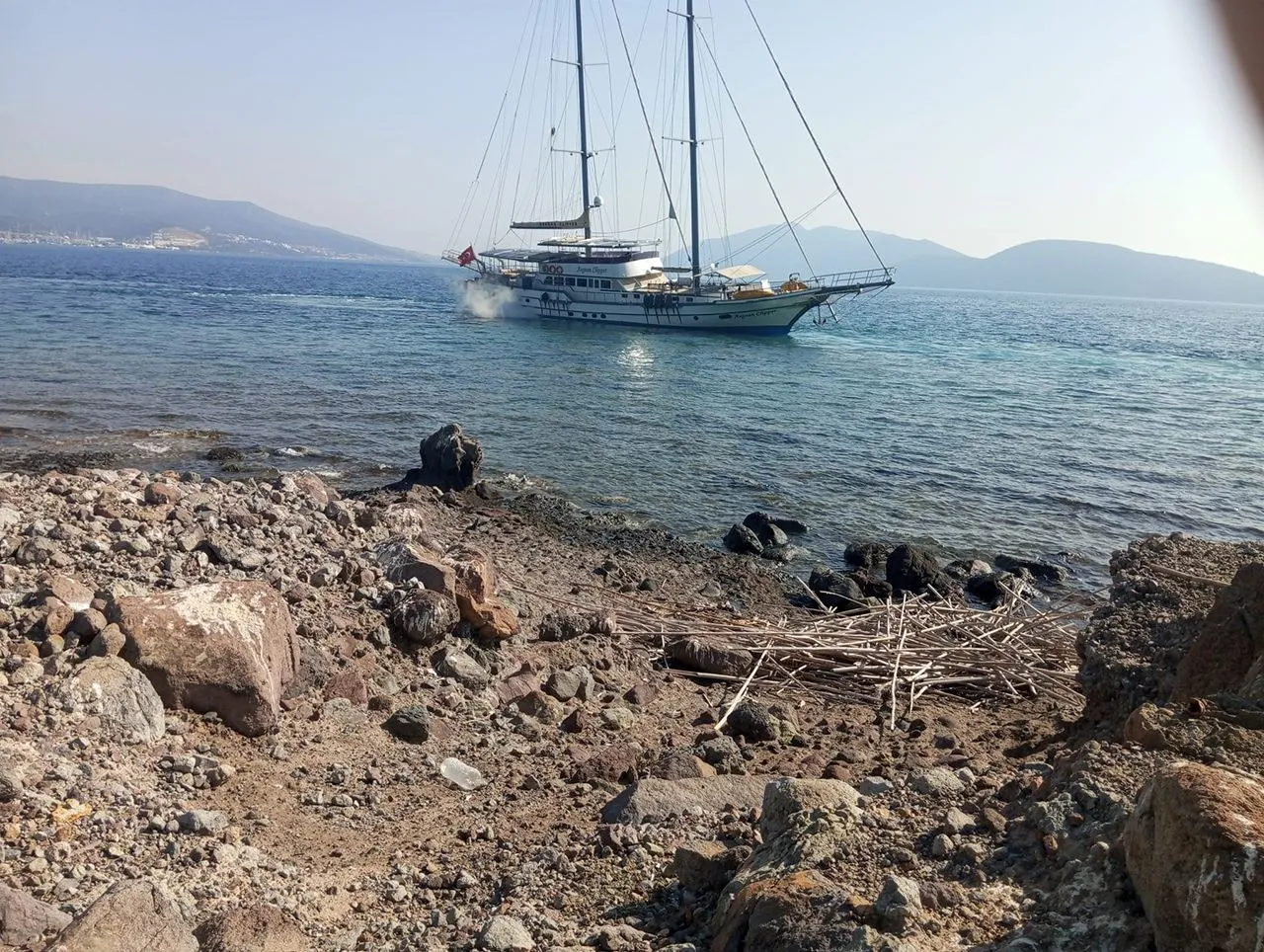 Muğla'nın Bodrum ilçesi Eskiçeşme Mahallesi Haremtan Burnu önlerinde seyreden "Aegean Clipper" adlı yelkenli tekne karaya oturdu.