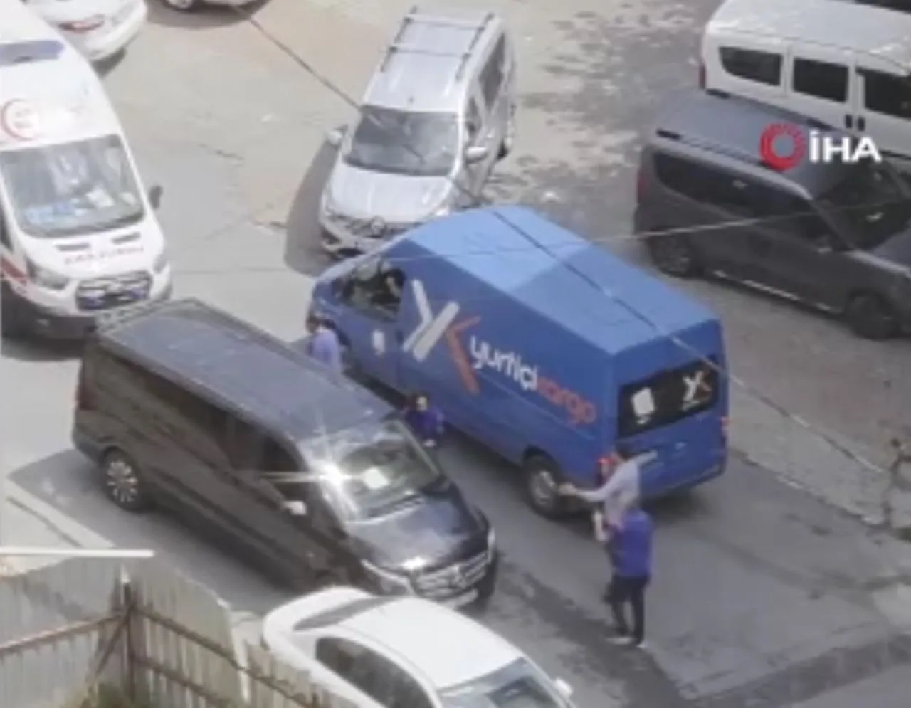 İstanbul Kağıthane'de bir kargo kamyonu sürücüsü ile otomobil sürücüsü, yol verme nedeniyle sokak içerisinde tartışmaya başladı.