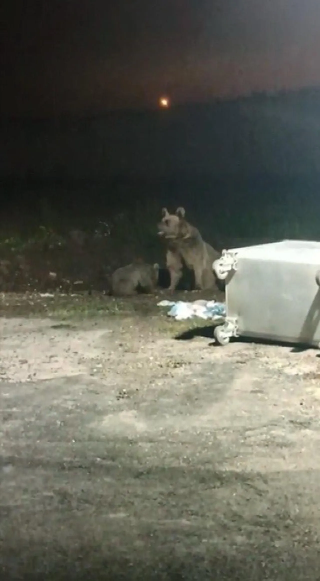 Cep telefonuyla kaydedilen görüntülerde, "Anne ayı ve yavrularının çöp konteynerında yiyecek araması var. Ayıların vatandaştan rahatsız olarak kaçmaları ile tekrar çöp konteynerının yanına gelen ayılar var. Ayrıca balkona çıkarak ayılar yaklaşan vatandaşa anne ayının bakarak yaklaşması ile vatandaşın balkondan içeriye can havliyle girmesi" yer alıyor.