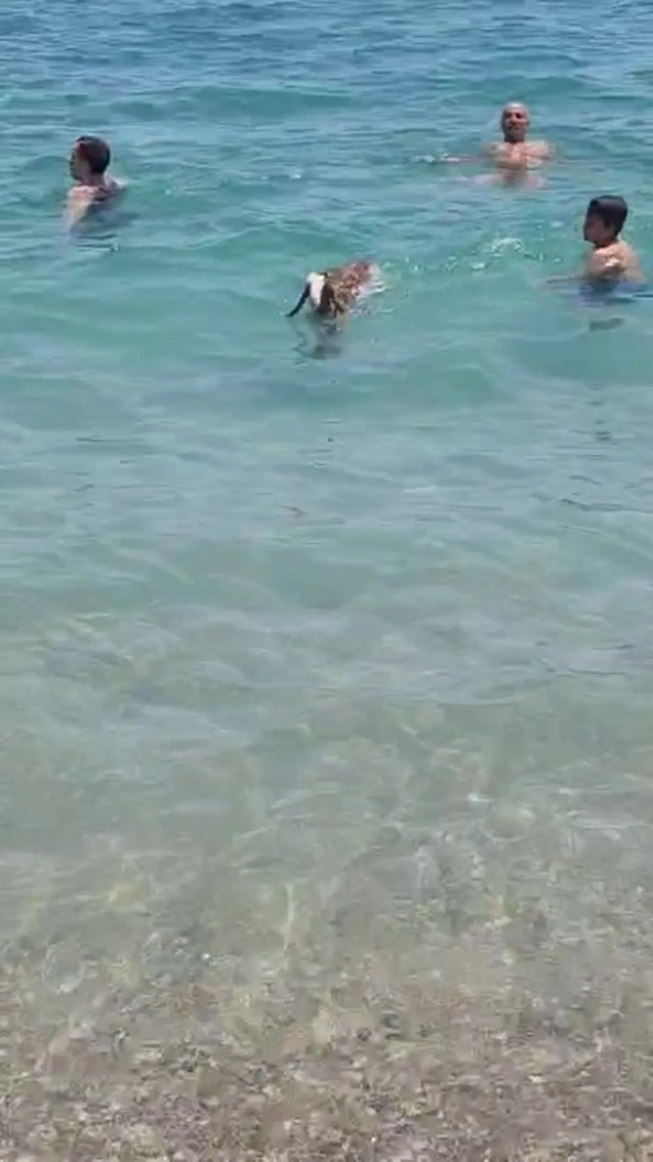 Antalya'da Konyaaltı Sahili'nde Kurban Bayramı sırasında kameralara yansıyan bu ilginç görüntü gündem oldu. Dünyaca ünlü plajda ilk başta "kaçak bir kurbanlık" olduğu sanılan oğlağın sahibiyle birlikte deniz keyfi yaptığı ortaya çıktı.