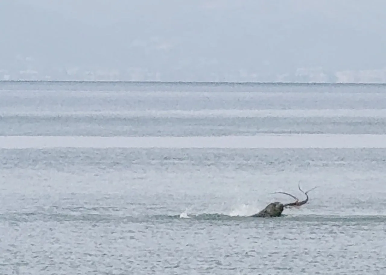 İri cüssesiyle ahtapotu suya vurup çıkaran, dakikalarca mücadele veren fokun ilginç avı cep telefonları tarafından görüntülendi.