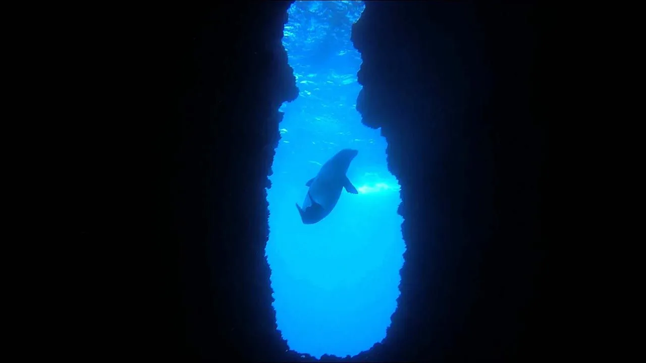 Aydın'ın Kuşadası ilçesinde, dünyadaki nüfusunun 900 olduğu düşünülen Akdeniz foku, su altı kamerasıyla görüntülendi.