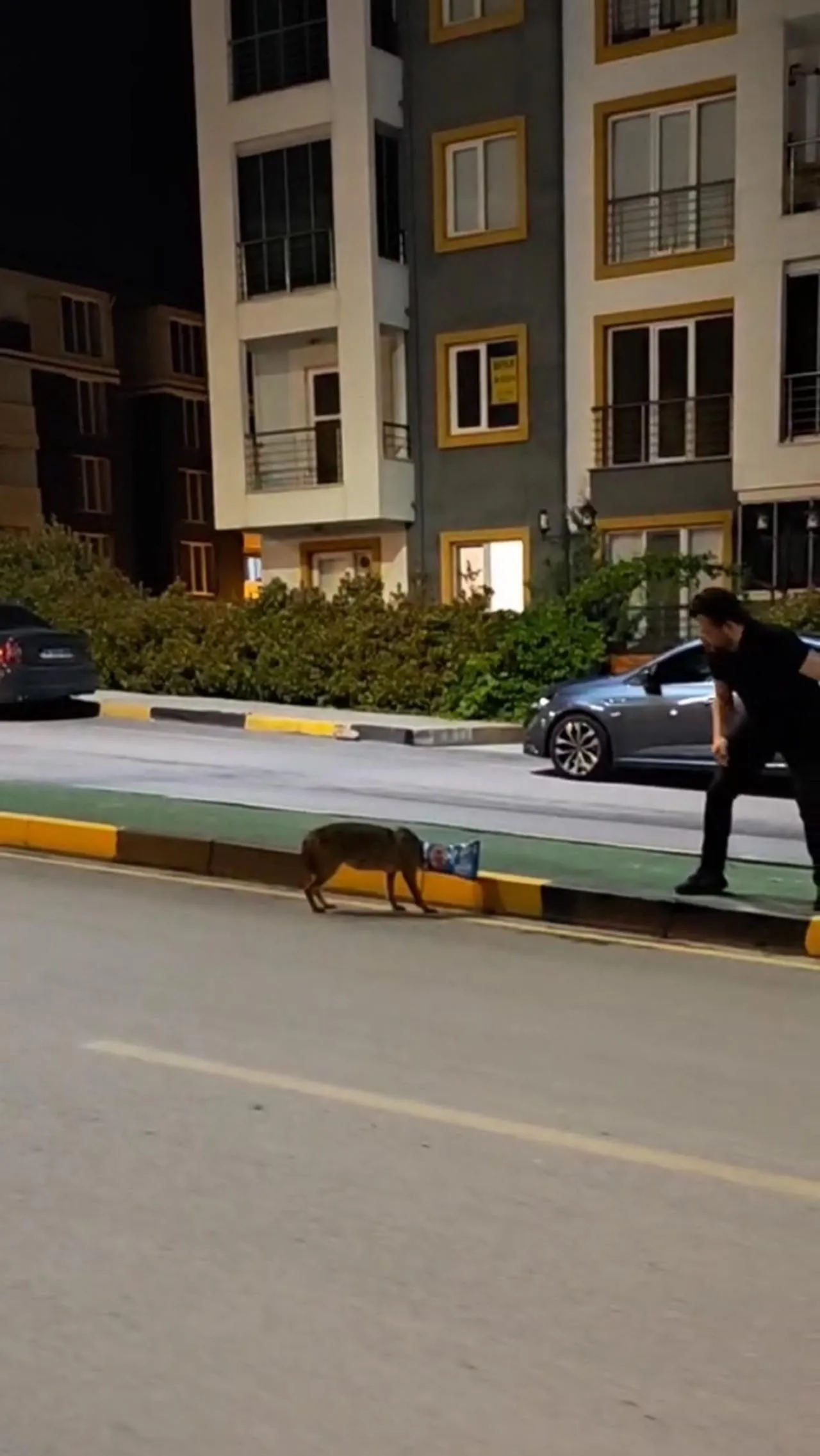 Olay, Karabük'ün Bahçelievler Mahallesi’nde meydana geldi. Karabük Üniversitesi’nde öğretim görevlisi Hüseyin Kurt, yolda yürüdüğü esnada refüjde başına poşet takılı halde bir çakalı fark etti.